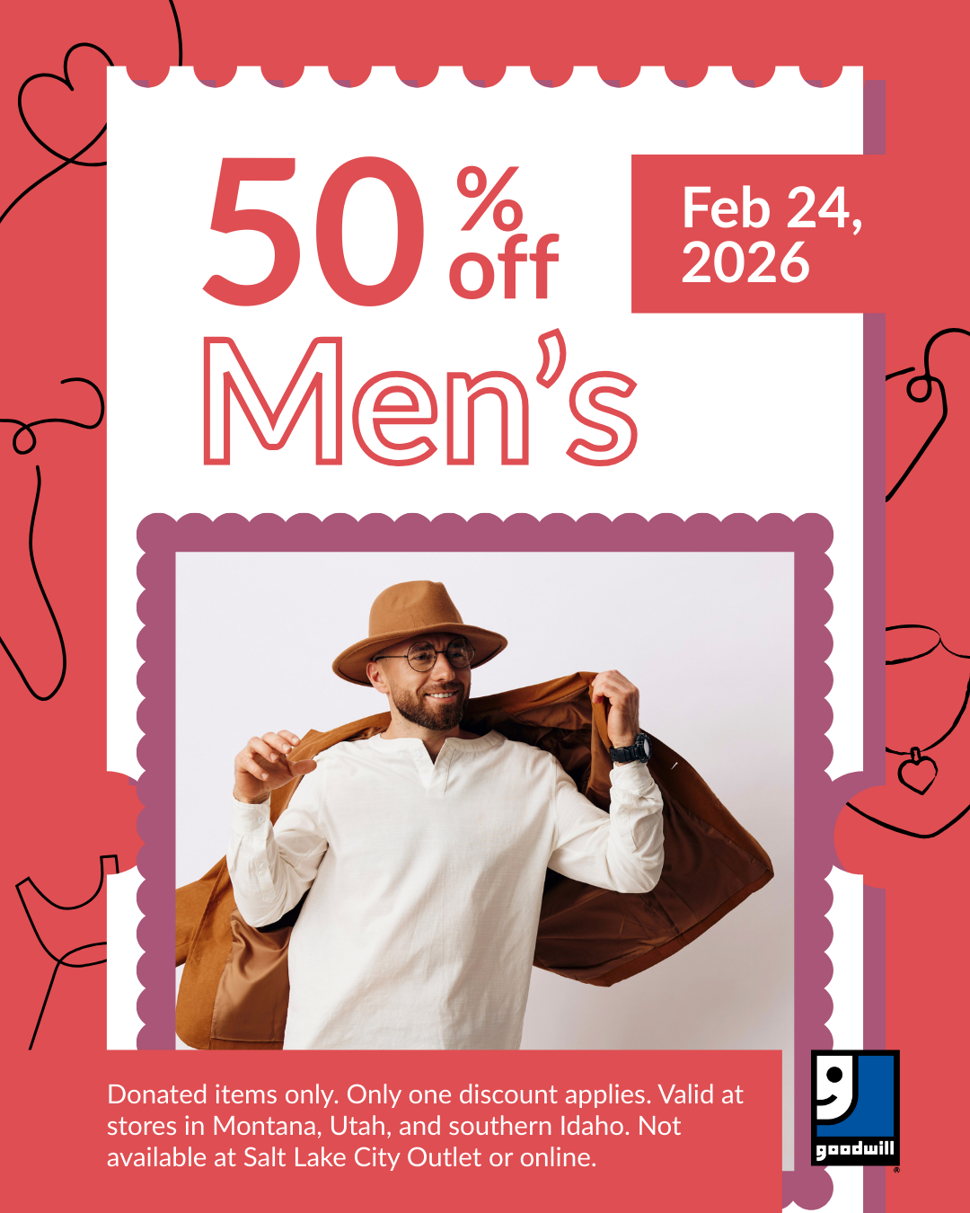 Save 50% on all donated men's clothing (shoes excluded). Show this coupon to the cashier to receive the discount. Only one discount applies. Excludes new items and is not available […]