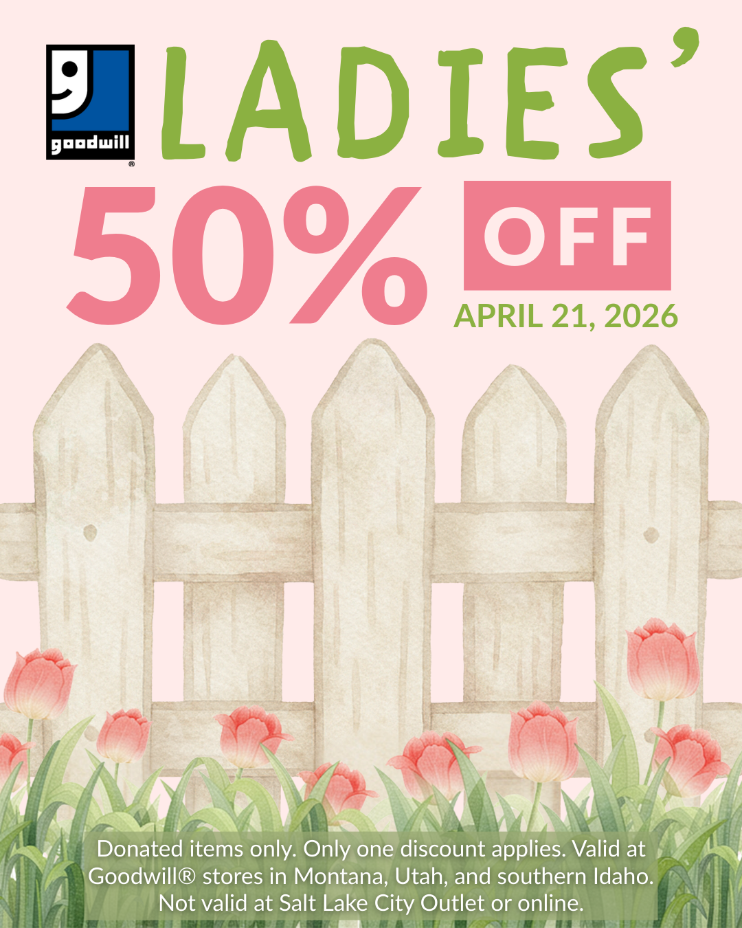 Save 50% on all donated ladies' clothing (shoes excluded). Show this coupon to the cashier to receive the discount. Only one discount applies. Excludes new items and is not available […]